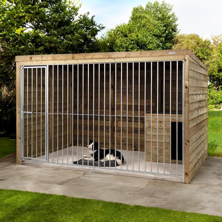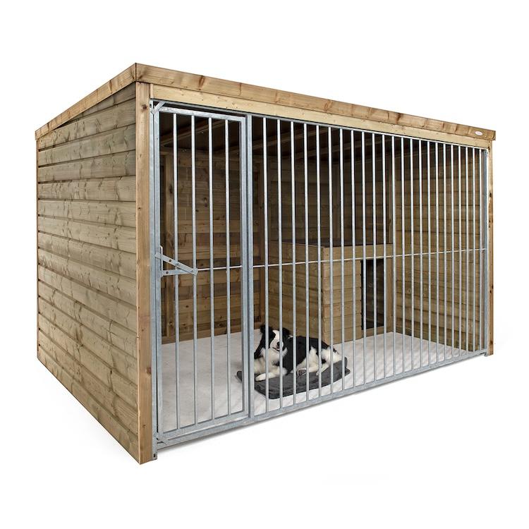 Onderhoudsvrije buitenkennel van duurzaam grenenhout